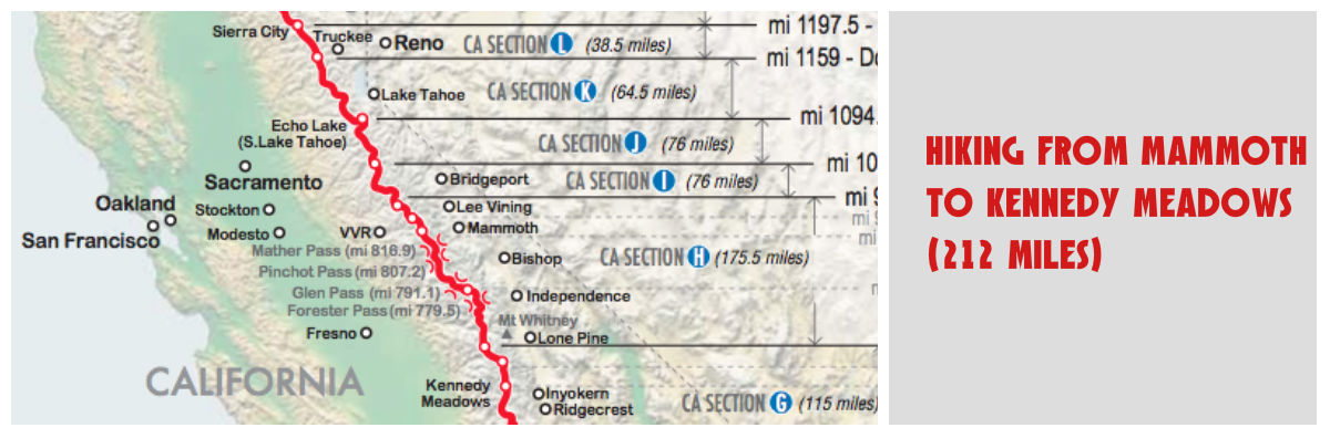 After a restless hotel night in Mammoth Lakes with upstair neighbours having a party of some kind – I’m probably not used to sleep indoors and having neighbours anymore – I walk over to Vons supermarket for groceries. My next stretch is the biggest and the baddest I’ve ever done so far. I’m about to hike all the way to Kennedy Meadows. A daunting 212 miles away, which I’m going to shoot for in one attempt, without any stops for resupply.