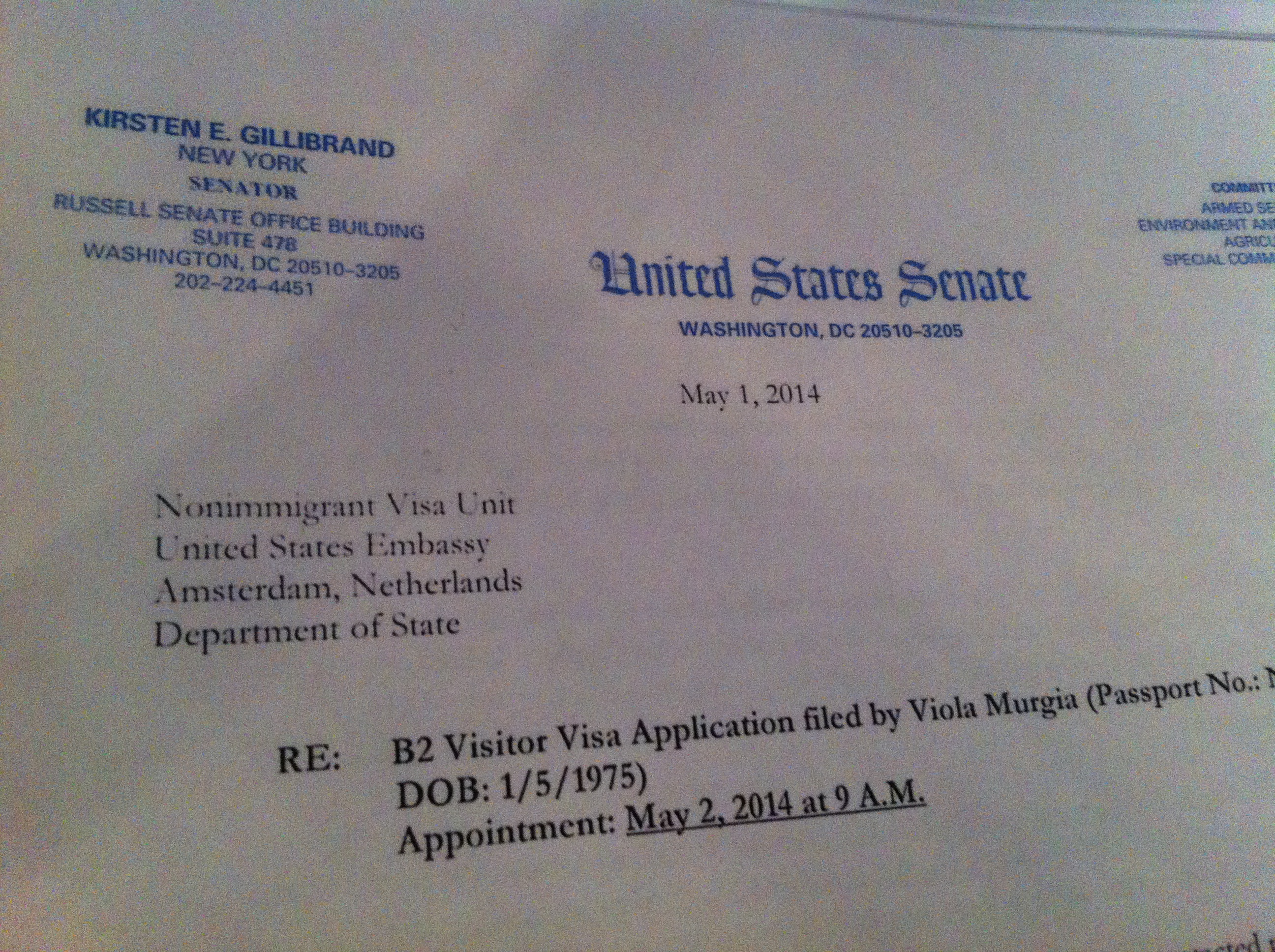 At the day of the interview, I drove to Amsterdam, an official letter from the desk of mrs. Gillibrand with me. The US consulate had already been informed about this letter. letter senatorI waited patiently in line to enter the US consulate, my 3rd visit in two months time. When I was called in, the interview took over 40 minutes, where the officer who reviewed me, fired one question after another at me. Like I had to defend myself in a crossfire. I was standing in front of the glass window, felt my heart racing like I was running a marathon on the spot, answering all of his questions and in the mean time, trying to stay calm.  After the interrogation, I was asked to take a seat and as I waited the officer would make his decision. I waited for more than one hour. And tried to empty my mind. Which didn’t work. Then, I was called back. I looked at the officer’s face and tried to read it, but all I could see was a mask, there was nothing there, no emotion, no empathy. Then he looked at me, and told me my visa was issued. I asked him to repeat it again, because I couldn’t believe what just happened.